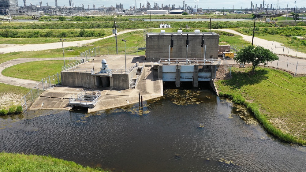 The construction of Velasco Pump station started in May 1971 with a contract price of $313,154.00 to Southern Engine and Pump Company for the equipment. The contract for construction of the station was awarded to Delta Construction Company for $926,569.00 in June of 1972 and took 450 calendar days to complete. (March 1974) Velasco Pump Station has three diesel pumps which are capable of pumping 210,000 gallons per minute. The station also has one electric pump that is capable of pumping 60,000 gallons per minute.